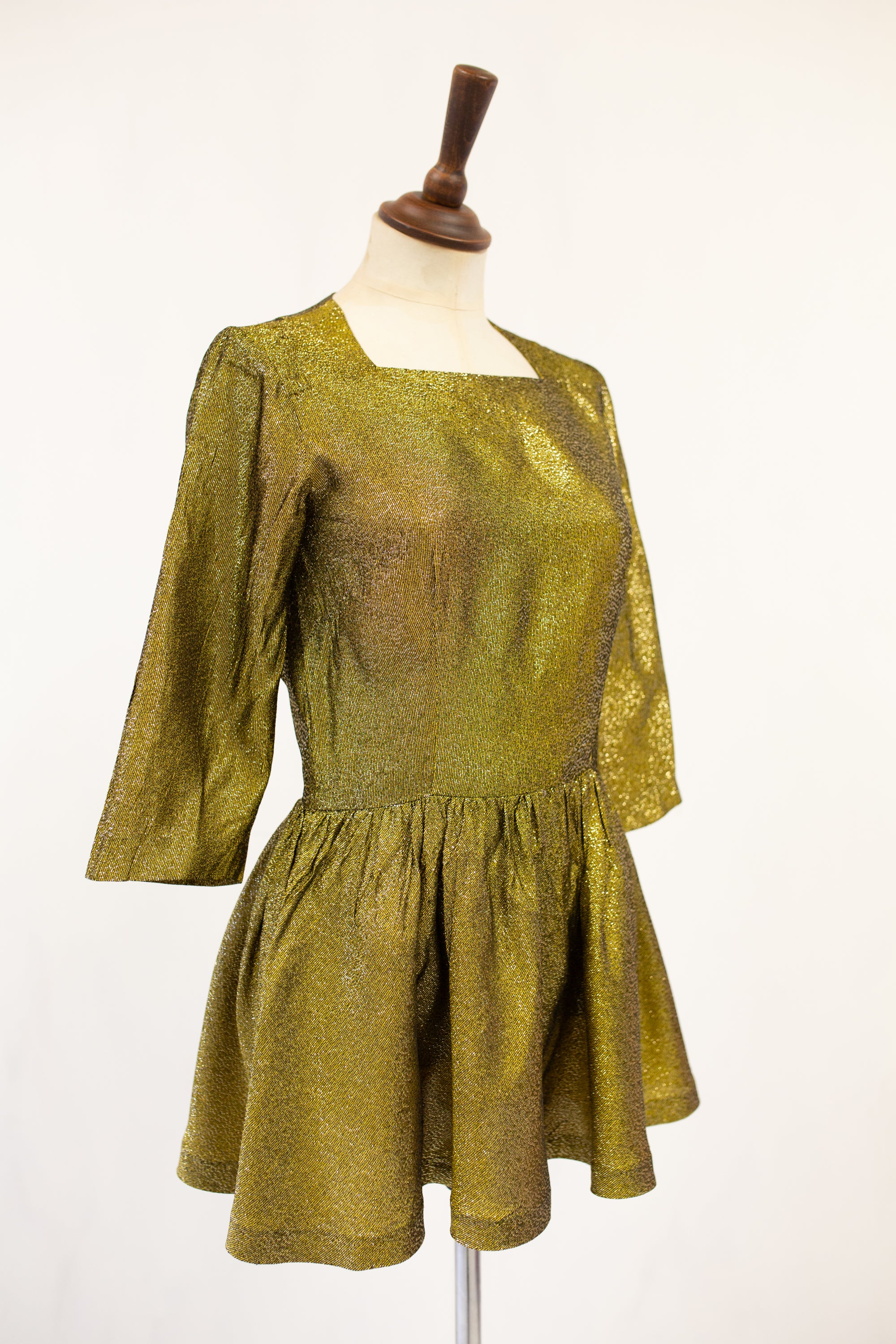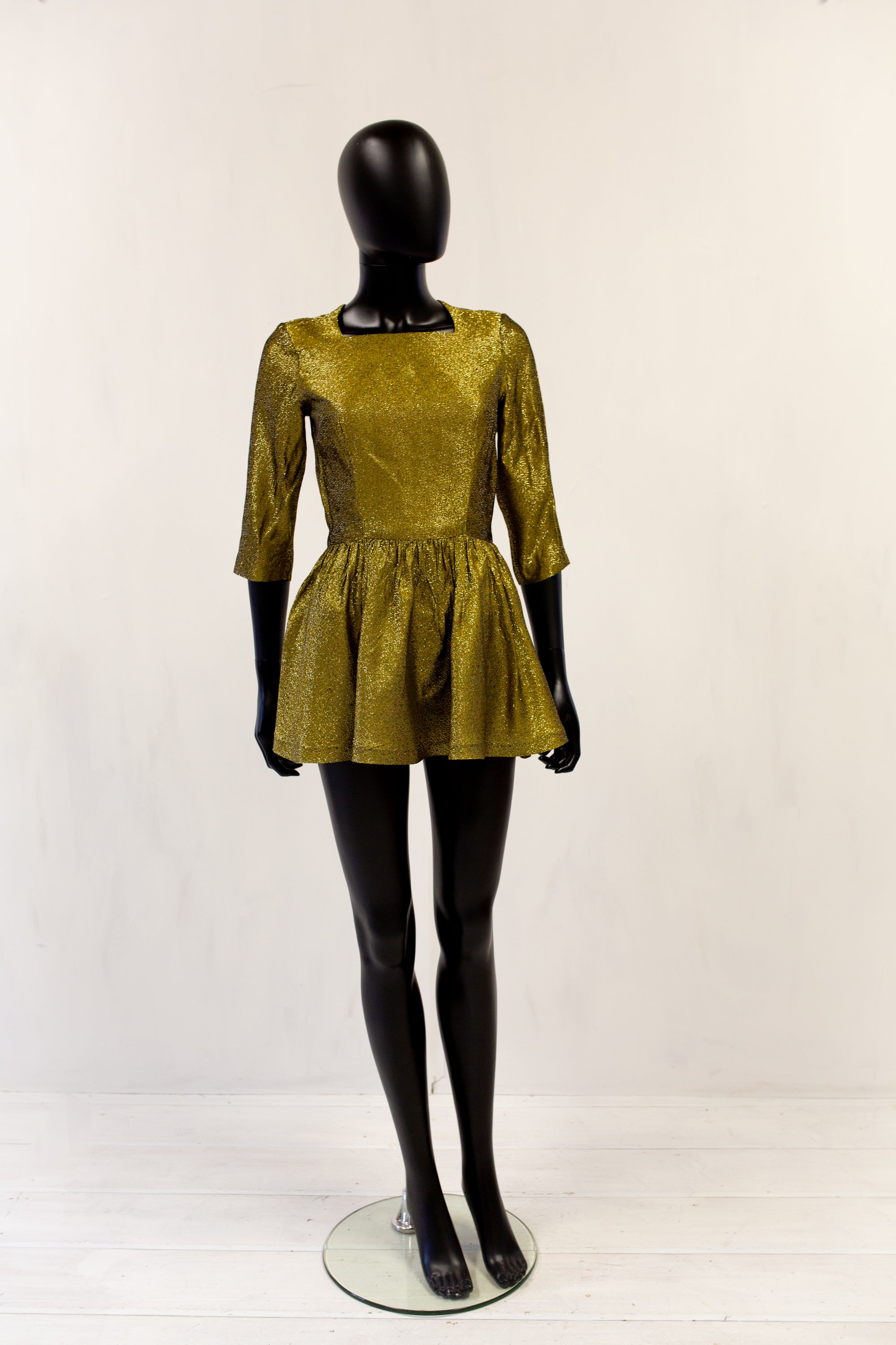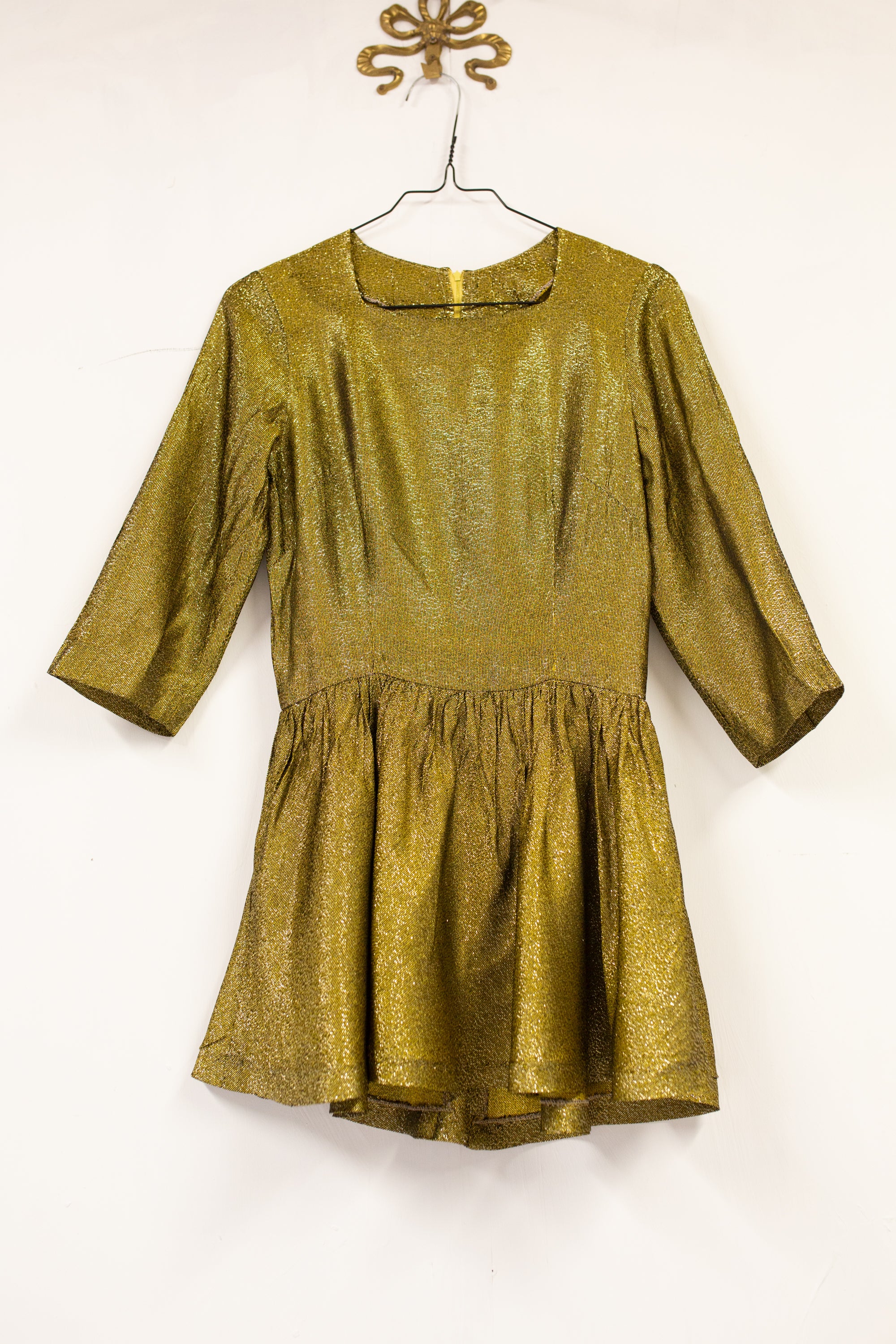 Original vintage 1950s Metallic Gold Micro mini dress / top.