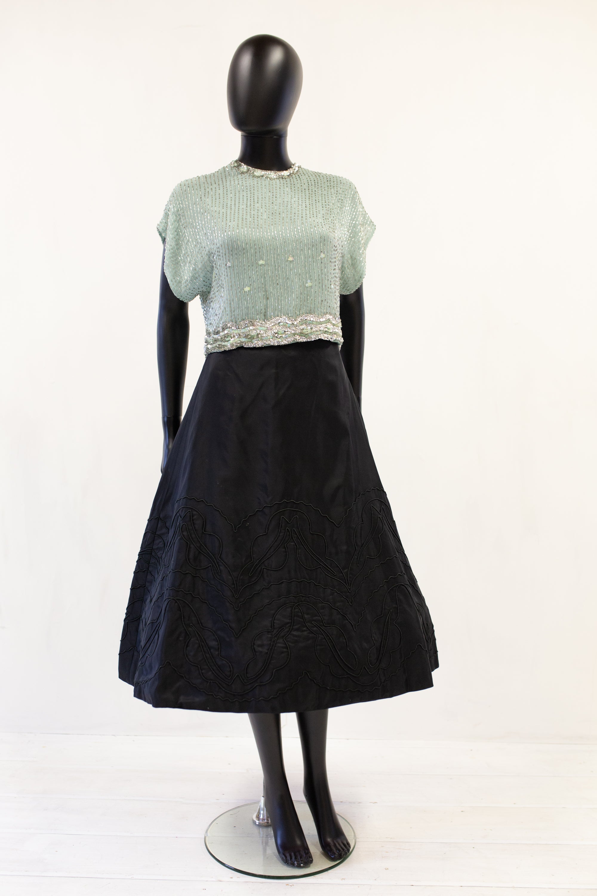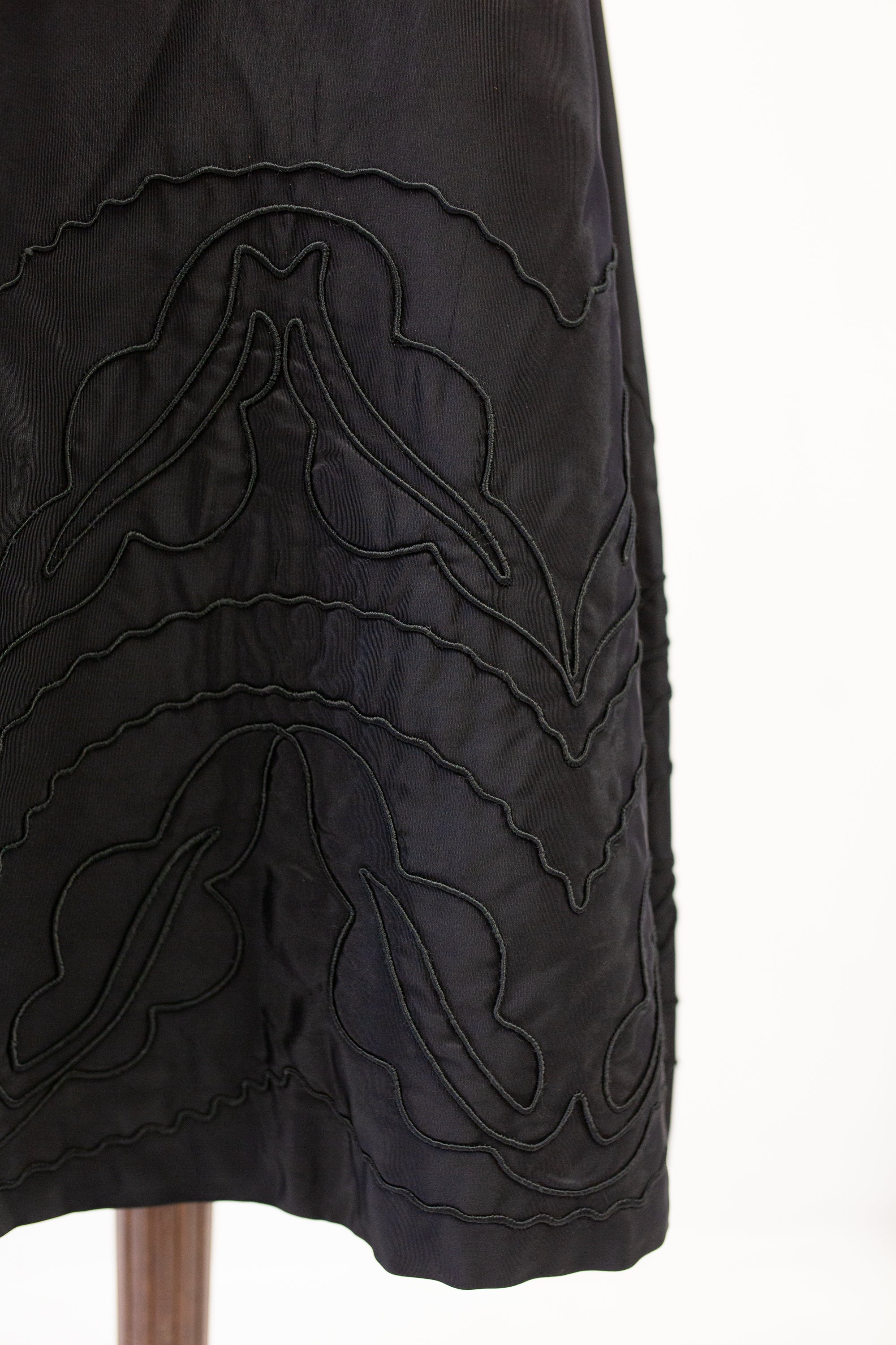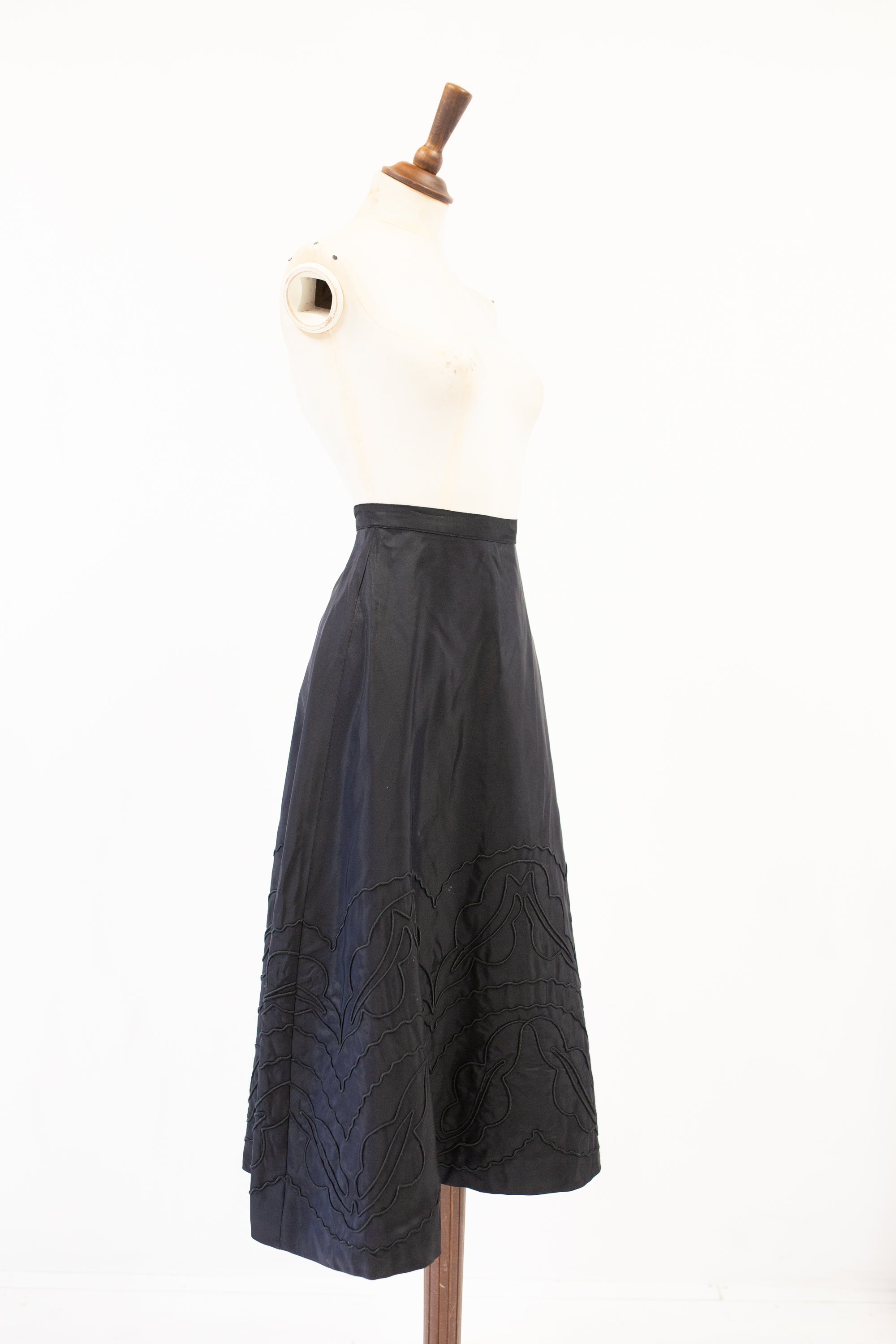 Original vintage 1950s black embroidered taffeta flared skirt.